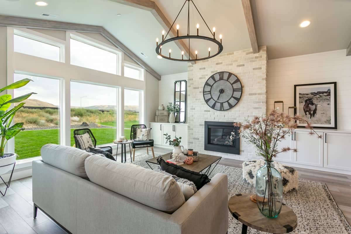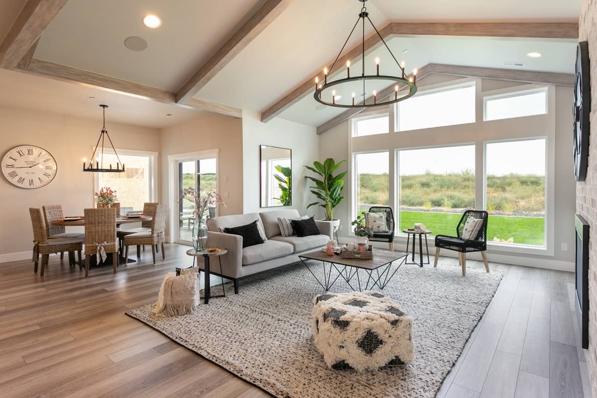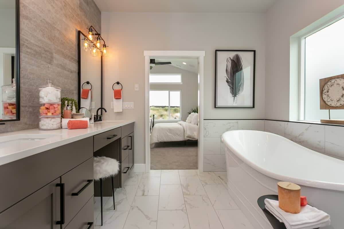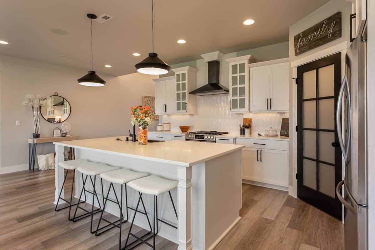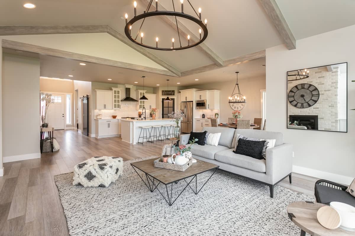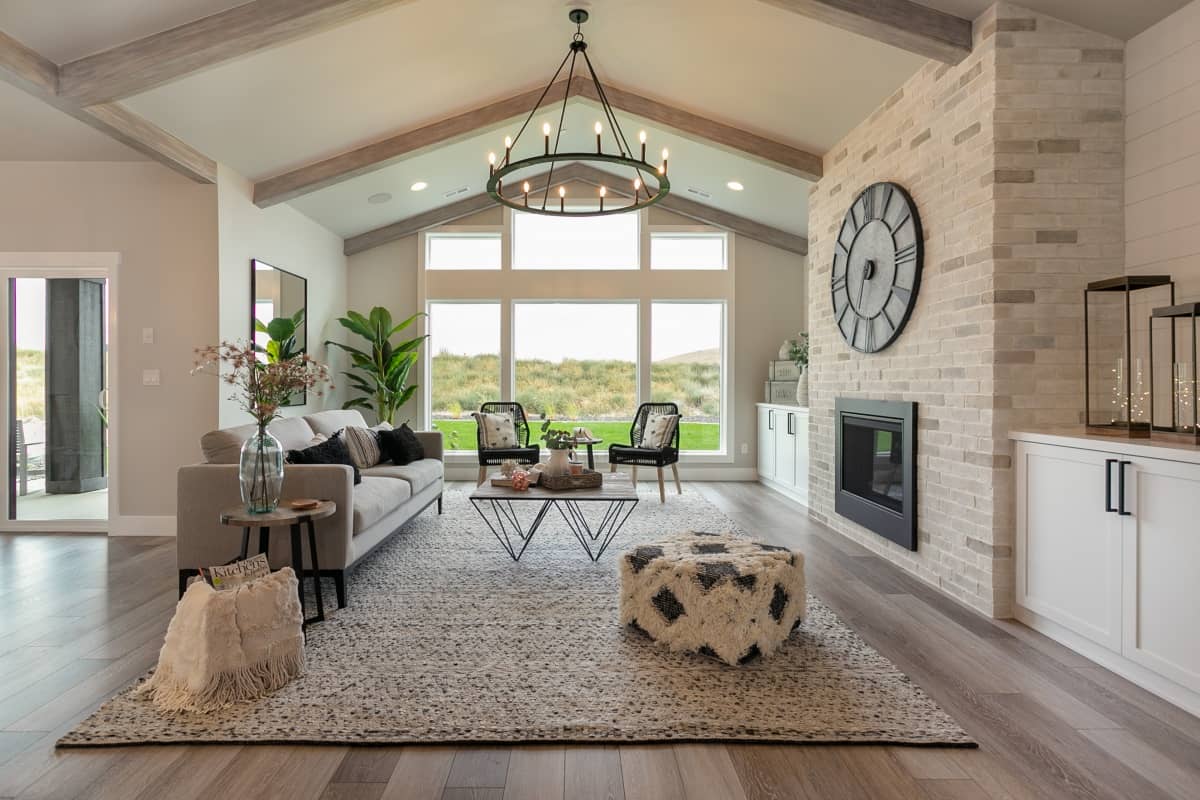 Welcome to the seamless fusion of “modern” and “farmhouse” in Prodigy’s Interlude plan. This new floor plan includes 3 bedrooms, 2 bathrooms, and an 3 car tandem garage. Classic farmhouse features like vaulted ceilings, wood-wrapped beams, and a free-standing tub are balanced with sleek modern colors and textures. Unique tile and black hardware are highlights of this must-see home.