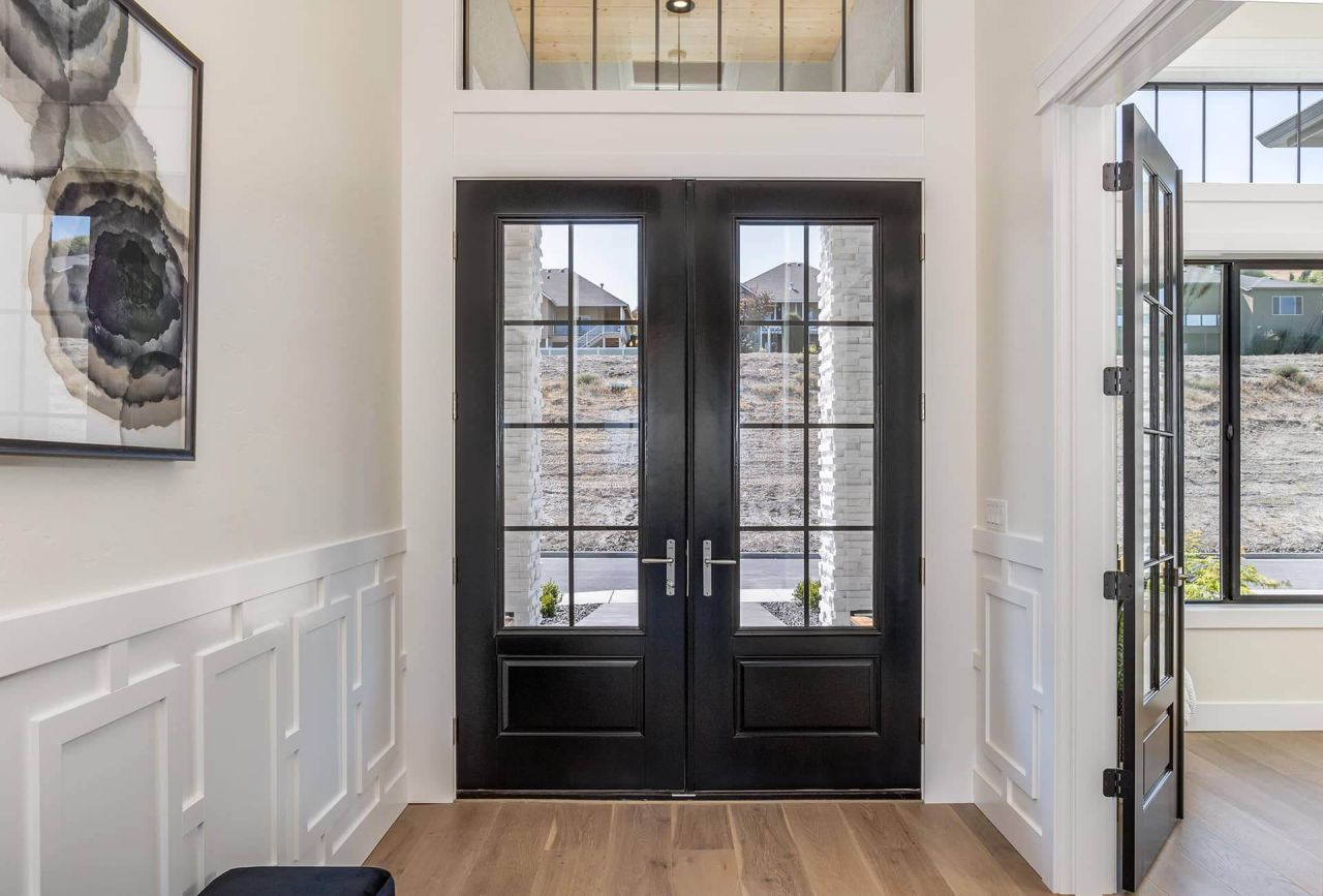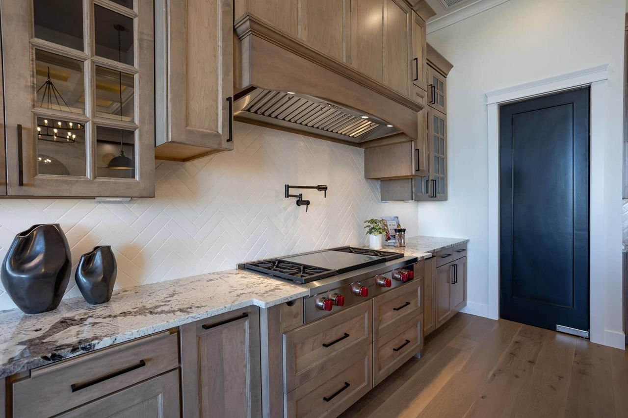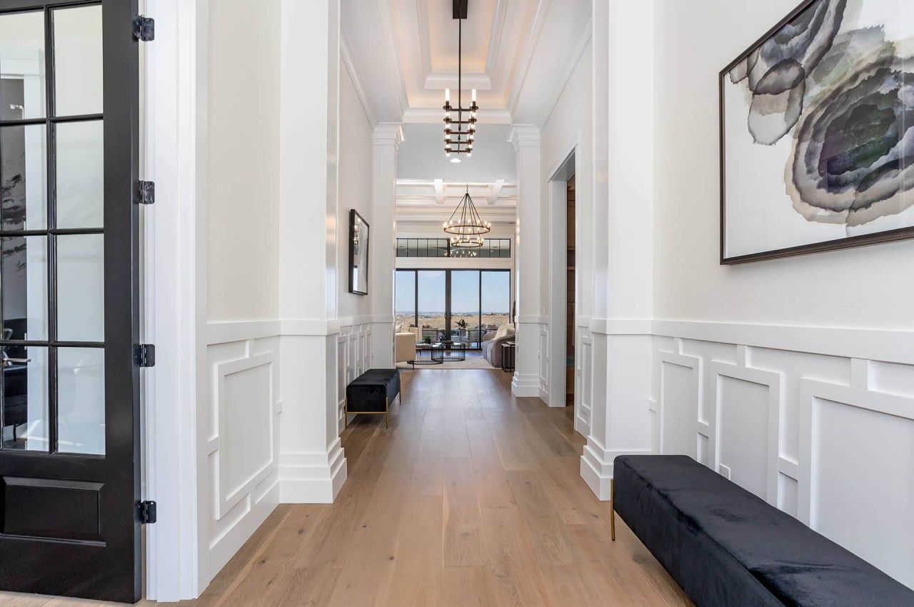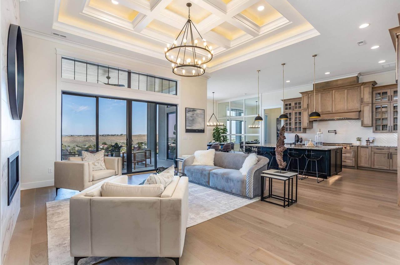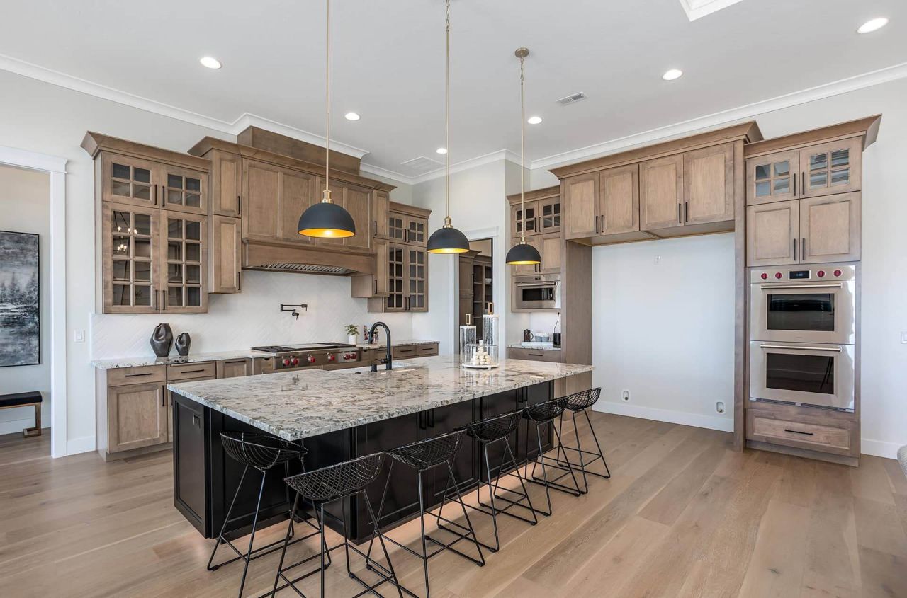 The “Modified Bravo” floor plan is brought to life by Prodigy’s vision. This grand 3,335-square-foot rambler boasts dramatic open spaces, 12-foot ceilings throughout, with coffering to 14-foot and 8-foot tall interior doors.