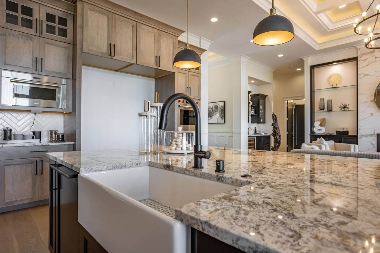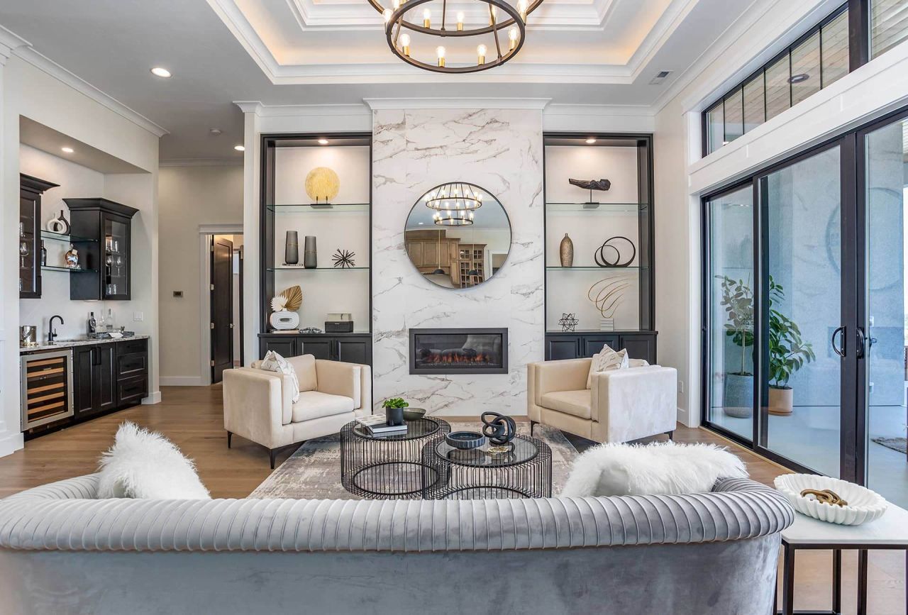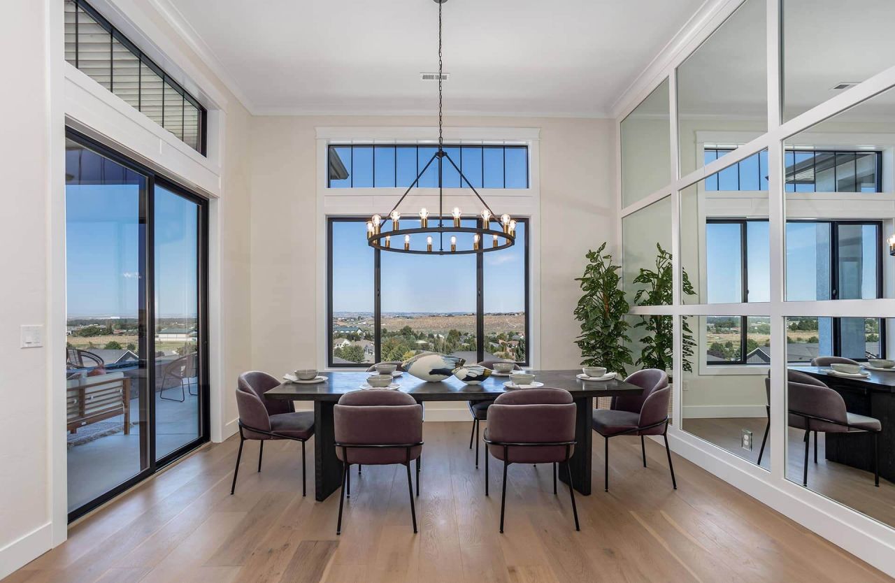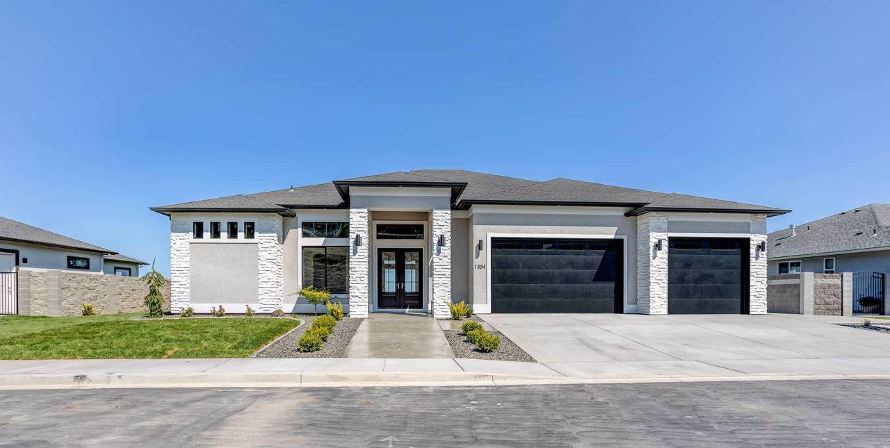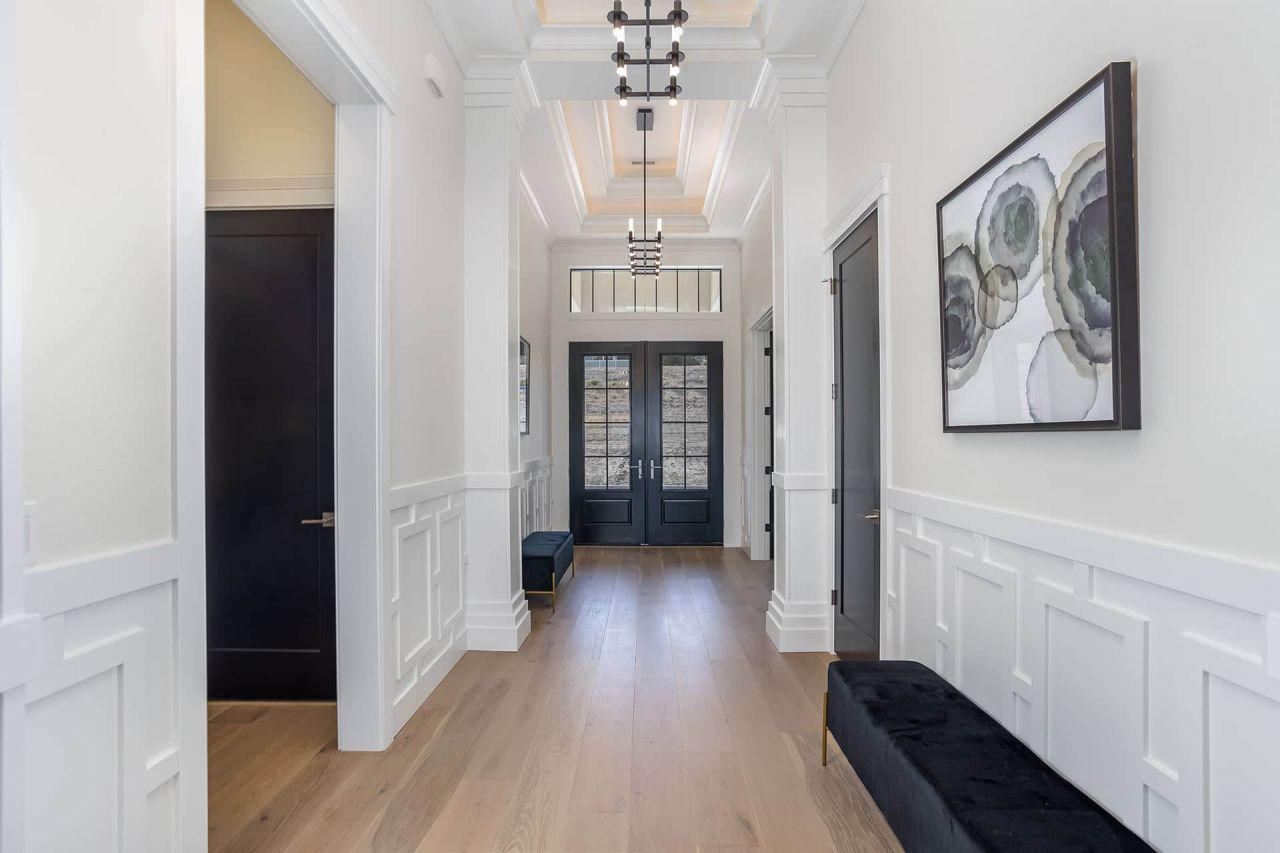 The “Modified Bravo” floor plan is brought to life by Prodigy’s vision. This grand 3,335-square-foot rambler boasts dramatic open spaces, 12-foot ceilings throughout, with coffering to 14-foot and 8-foot tall interior doors.