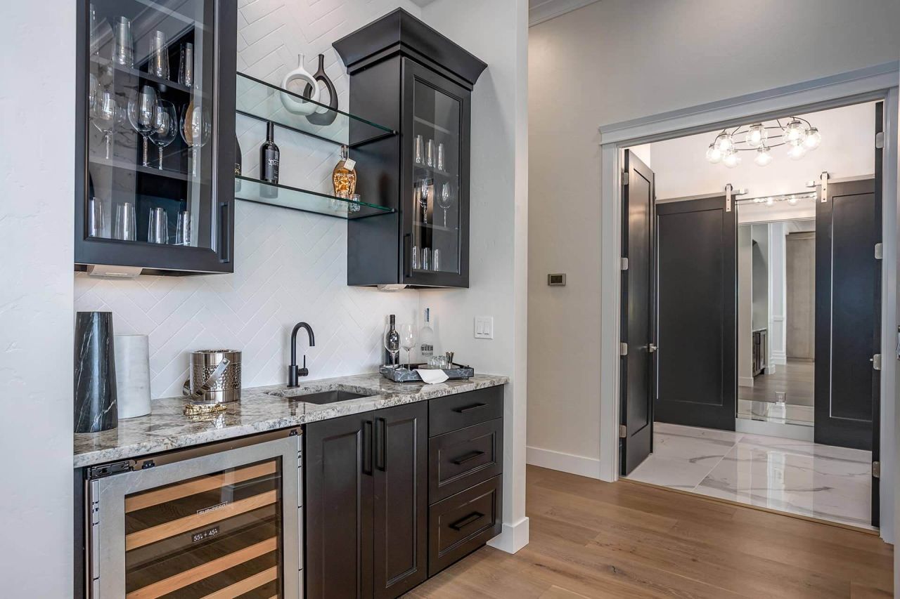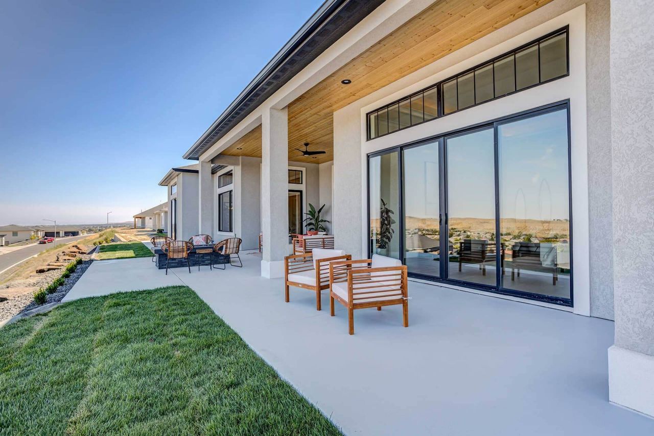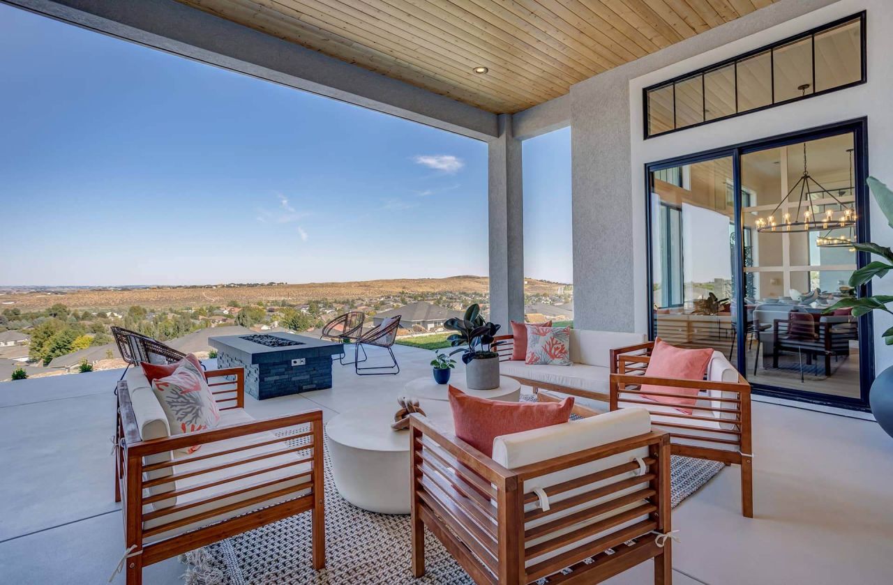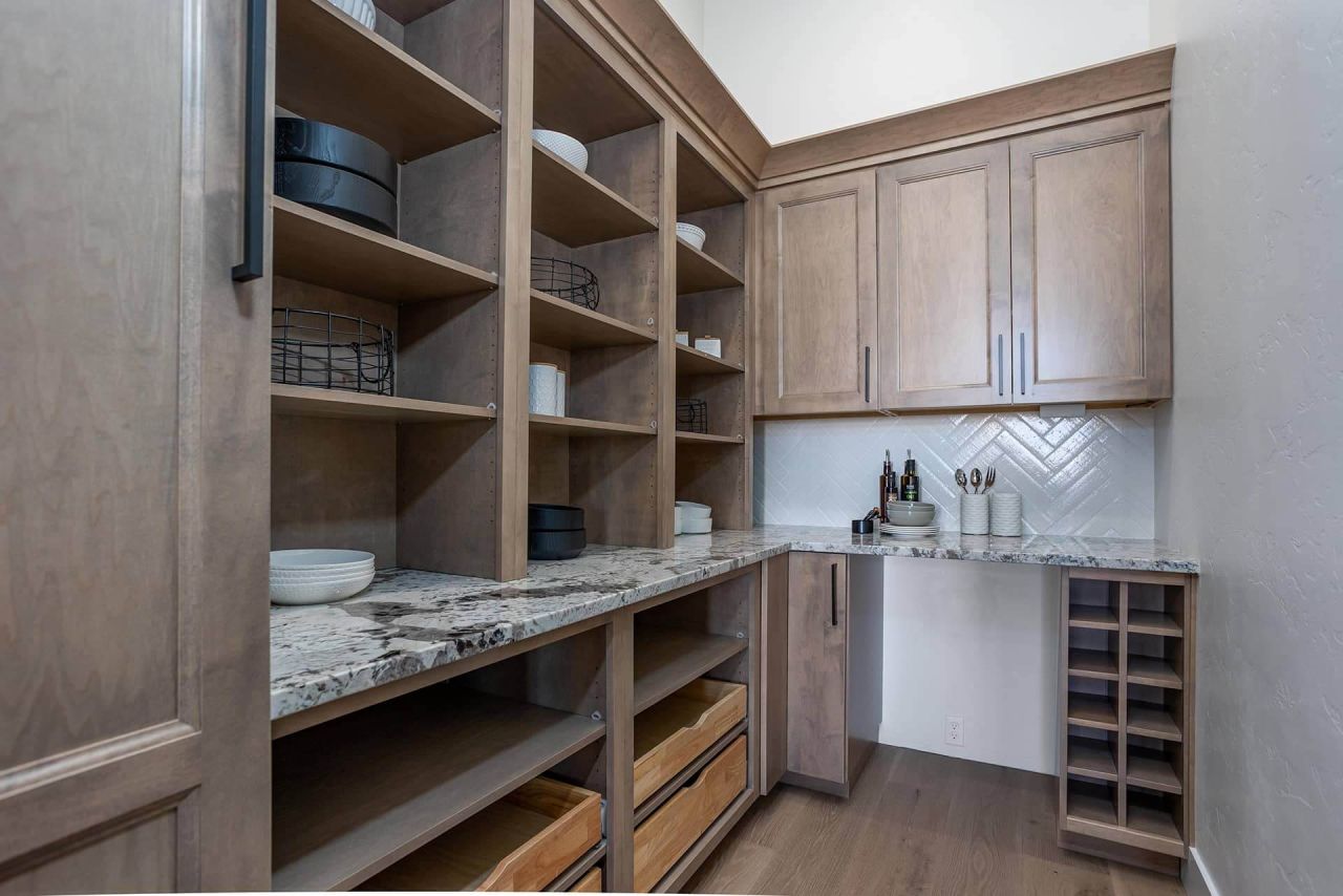 The “Modified Bravo” floor plan is brought to life by Prodigy’s vision. This grand 3,335-square-foot rambler boasts dramatic open spaces, 12-foot ceilings throughout, with coffering to 14-foot and 8-foot tall interior doors.