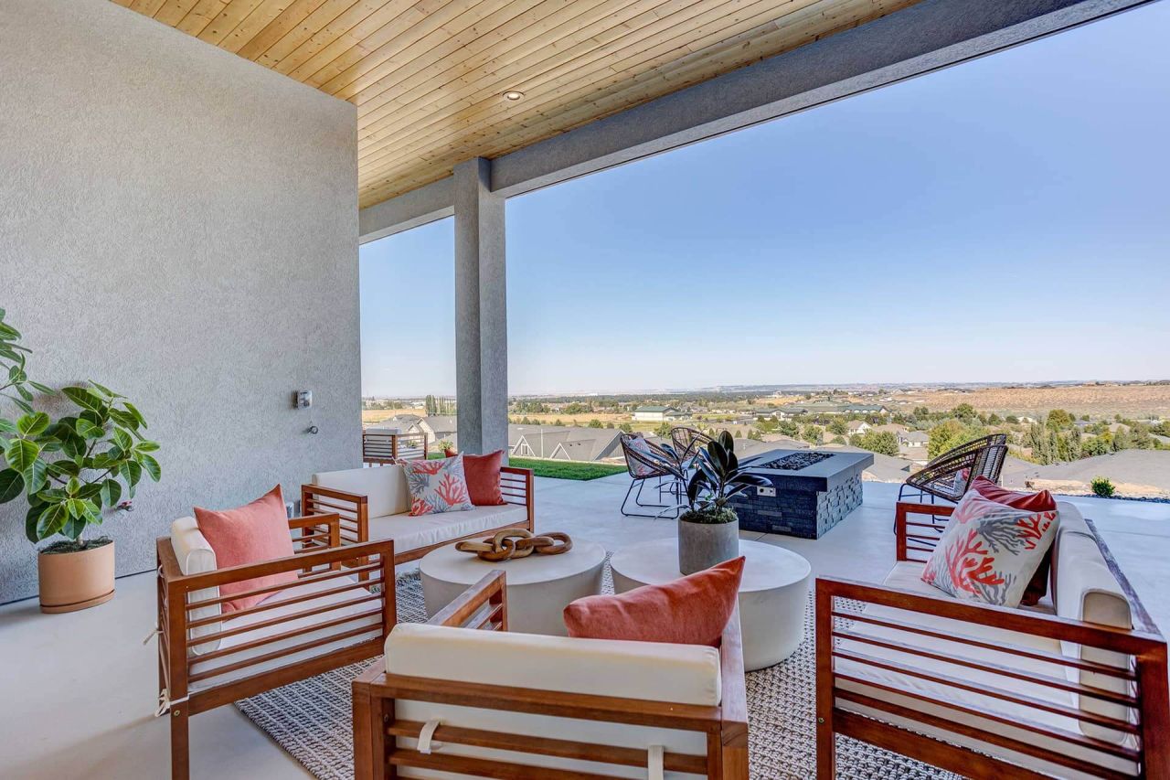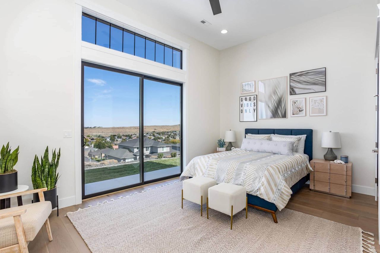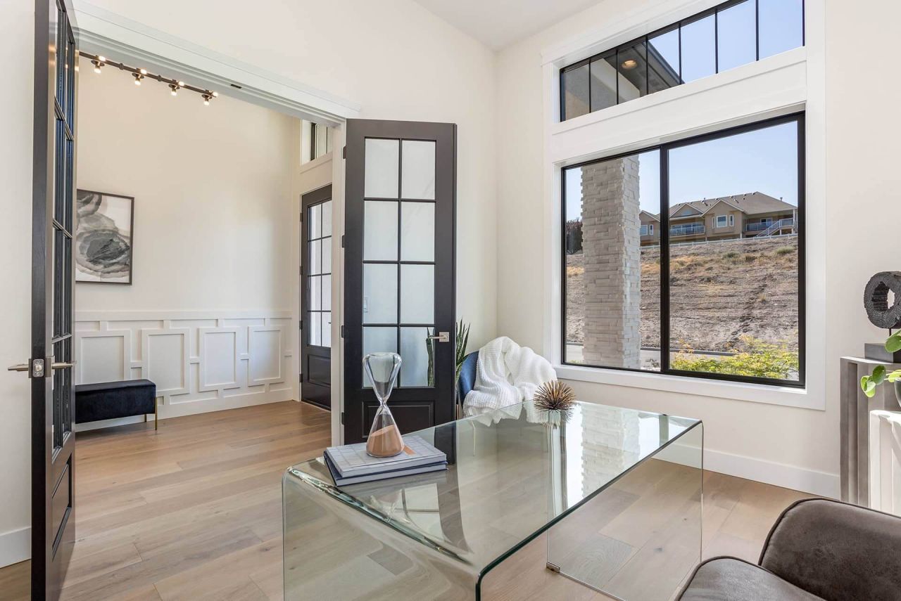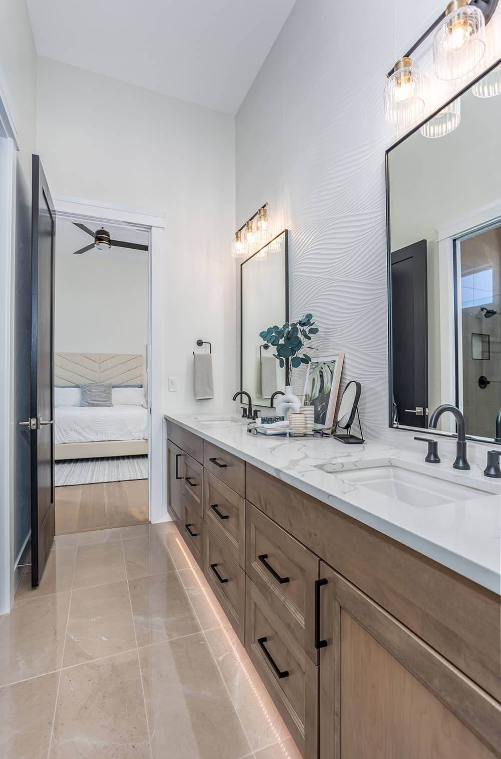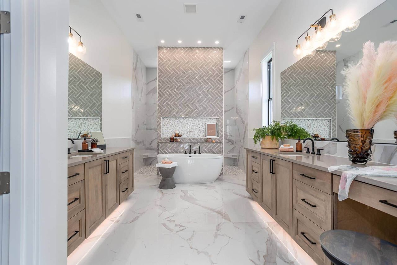 The “Modified Bravo” floor plan is brought to life by Prodigy’s vision. This grand 3,335-square-foot rambler boasts dramatic open spaces, 12-foot ceilings throughout, with coffering to 14-foot and 8-foot tall interior doors.