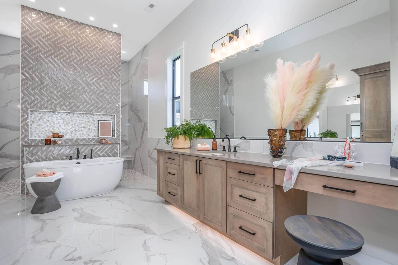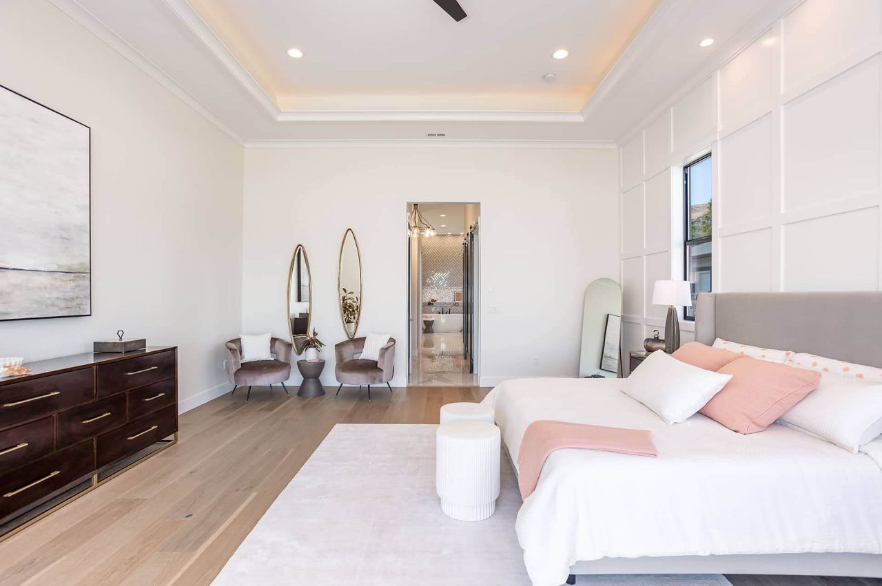 Indulge in your favorite gourmet cuisine in the chef’s kitchen equipped with a 9-foot island, quartz countertops, custom cabinetry, under-cabinet lighting, and a fabulous extended butler’s pantry. Stylish yet functional, the Bravo features a split design, two secondary bedrooms with a Jack & Jill bath on one side of the home and a spectacular owner’s suite on the opposite side. The sizable owner’s suite boasts a 12-foot slider to the patio, a massive custom walk-in closet, and a luxurious spa bath that features a freestanding tub with a walk-thru tiled shower. Every selection was chosen with great care and detail by the award-winning builder and designer.