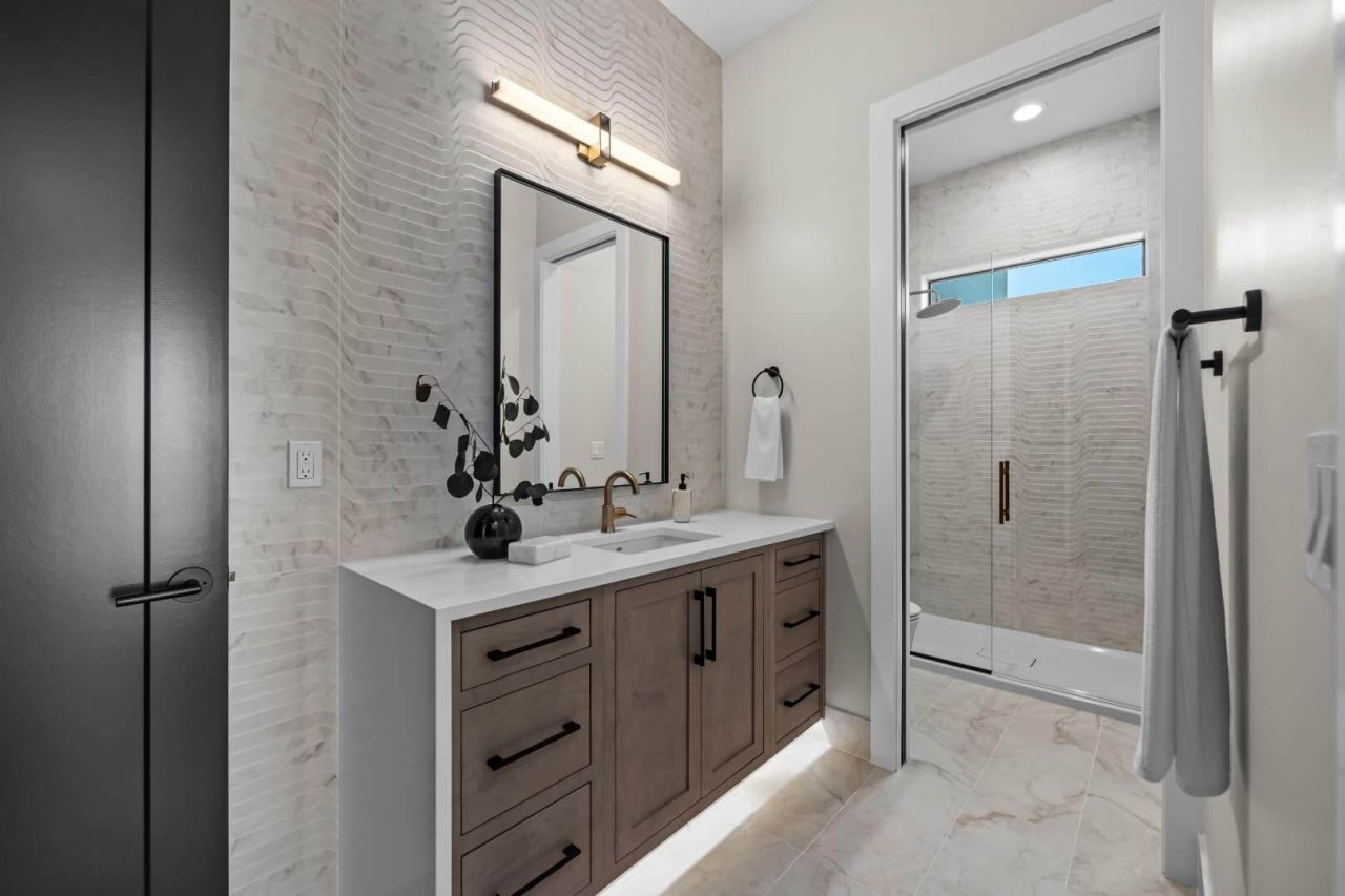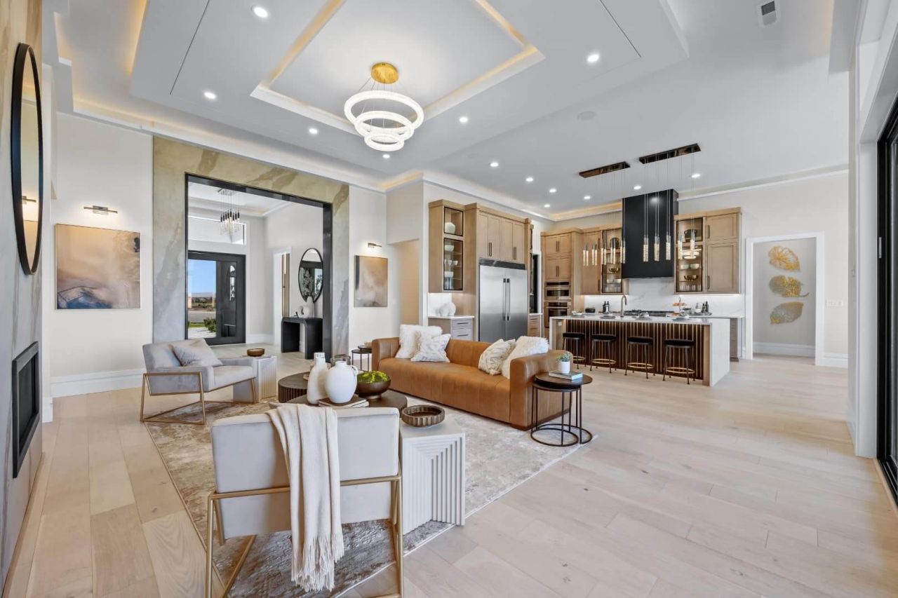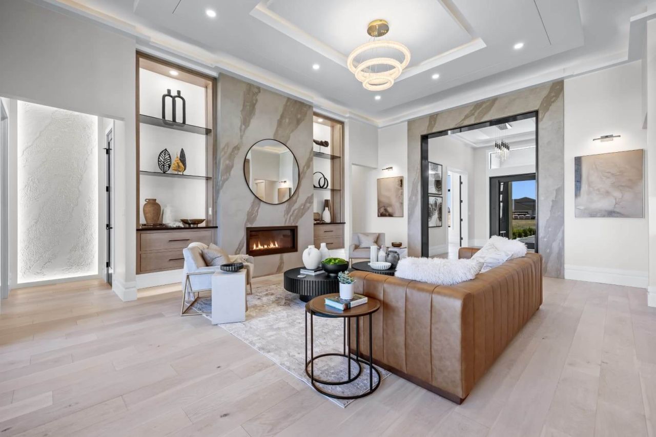 Introducing Prodigy Homes’ latest design release: The Forte RV Floorplan, a single-story masterpiece that seamlessly blends timeless architecture with striking modern interiors, showcased at the 2024 Parade of Homes™. The Forte boasts elegant hardwood floors, soaring 10’-12’ ceilings with custom dropped details, 8’ interior doors, and stylish smoked glass accents. It includes an insulated theater room with a large bar and an awe-inspiring spa-like owner’s retreat featuring a spacious walk-in closet, free-standing tub, walk-in shower, and heated floors. This home offers 4 bedrooms, an office with built-in closets and cabinets, a large laundry room with extensive storage, generous counter space, and a dog wash. At the heart of the home is a gourmet kitchen, meticulously designed with upgraded appliances, maple cabinets, LED lighting, and a large quartz waterfall island. Explore luxury redefined with The Forte RV Floorplan.