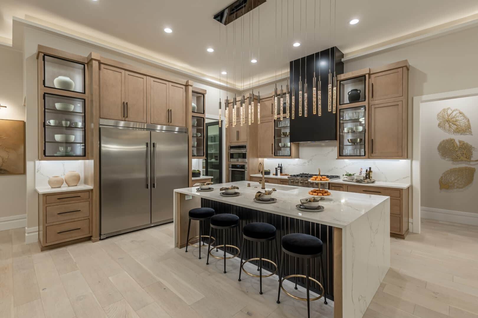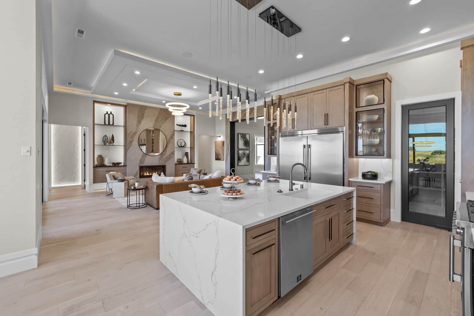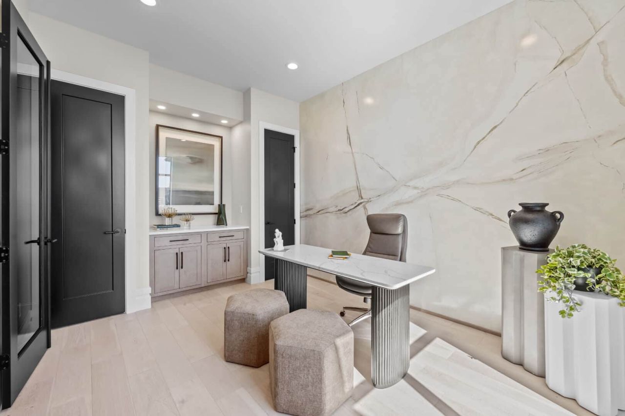 Introducing Prodigy Homes’ latest design release: The Forte RV Floorplan, a single-story masterpiece that seamlessly blends timeless architecture with striking modern interiors, showcased at the 2024 Parade of Homes™. The Forte boasts elegant hardwood floors, soaring 10’-12’ ceilings with custom dropped details, 8’ interior doors, and stylish smoked glass accents. It includes an insulated theater room with a large bar and an awe-inspiring spa-like owner’s retreat featuring a spacious walk-in closet, free-standing tub, walk-in shower, and heated floors. This home offers 4 bedrooms, an office with built-in closets and cabinets, a large laundry room with extensive storage, generous counter space, and a dog wash. At the heart of the home is a gourmet kitchen, meticulously designed with upgraded appliances, maple cabinets, LED lighting, and a large quartz waterfall island. Explore luxury redefined with The Forte RV Floorplan.